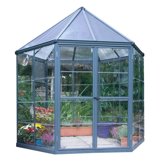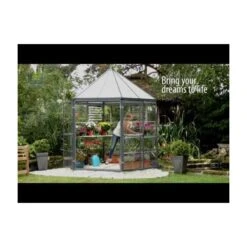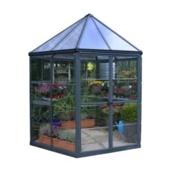 An eye-catching design and high-specification build make the 8′ x 7′ Palram Canopia Oasis Hexagonal Polycarbonate Greenhouse (2.4m x 2.1m) the perfect place to grow plants and a great standalone conservatory too.