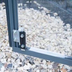 Supported by a robust aluminium frame and galvanised steel perimeter base, this 8×7 glasshouse uses both light-diffusing 4mm twin-wall polycarbonate roof panels and crystal-clear 0.7mm polycarbonate side panels, which combine to provide 82% light transmission.