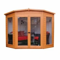 This 8×8 Barclay Corner Summerhouse is ideal for a corner position in the garden, offering maximum utilisation of space with a light and airy design.