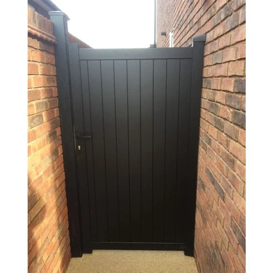 The Readymade Gates Devon Premium Aluminium Side Gate in Black boasts a modern, streamlined design and top-quality build, making it a stylish and secure entrance to any garden.