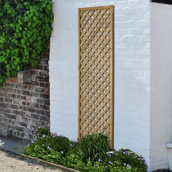 The Forest 5’11” x 1’11” Rosemore Pressure Treated Diamond Trellis (1.8m x 0.6m) is the ideal way to support climbing plants. This stylish lattice makes a beautiful garden screen or partition, and looks sublime mounted on a wall.