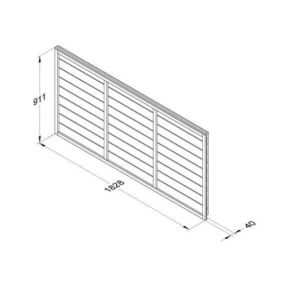 This 6×3 fence panel is constructed in the UK from straight-edged, overlapping horizontal boards, mounted in a robust perimeter frame, capped and reinforced by 2 central battens on each side of the panel. The wood is FSC®-certified, which is only sourced from sustainable, well-managed forests.