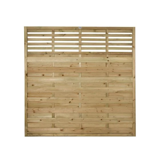 This 6ft fence panel measures 1800mm x 1800mm x 40mm. 4ft and 5ft versions are also available, as is a matching garden gate.