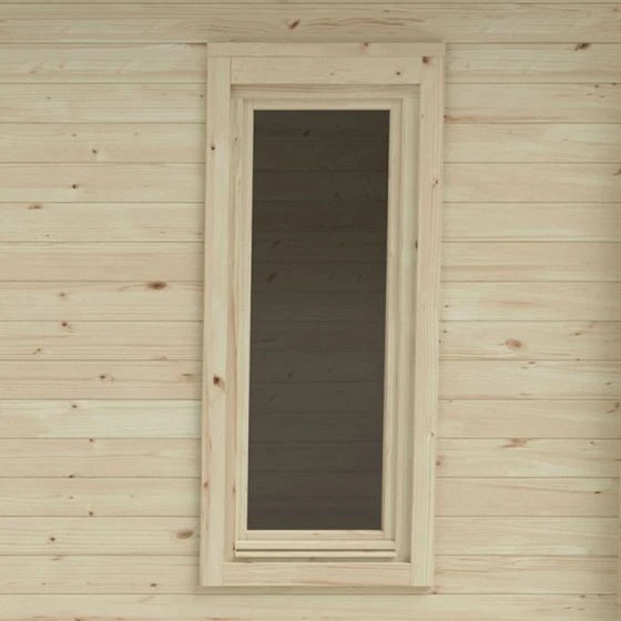 - Third window can be fitted on left- or right-hand side of the log cabin