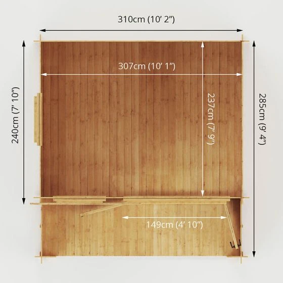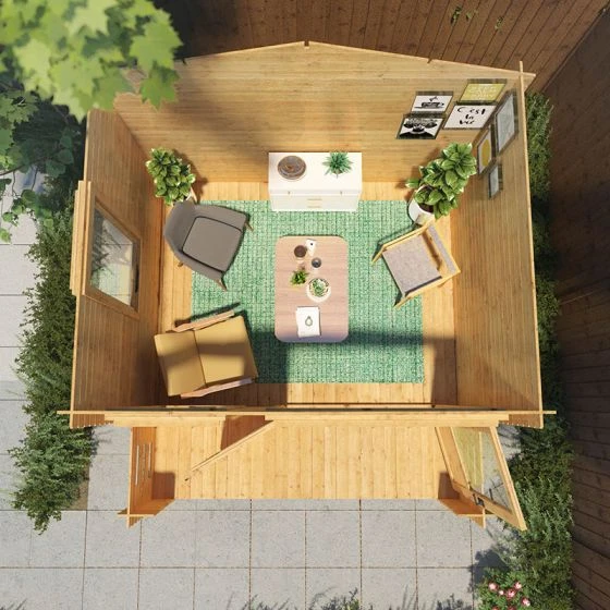 This garden cabin is constructed in the UK from 19mm interlocking Baltic pine boards on a robust 27mm x 44mm frame, so is strong, long lasting, and very well insulated. All of the timber used is FSC®-certified, so only sourced from sustainable, well-managed forests.