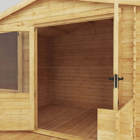 The floor and roof are both built from premium 12mm tongue and groove. The latter comes with a traditional apex design, overhang, and high-quality mineral felt cover for complete weatherproof protection.