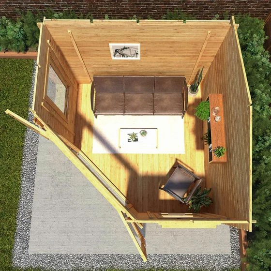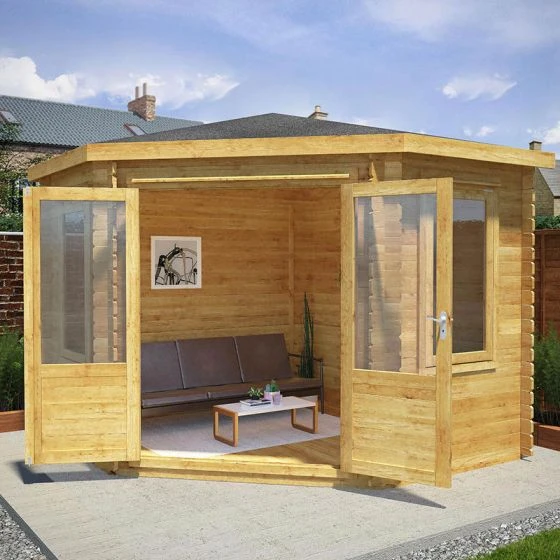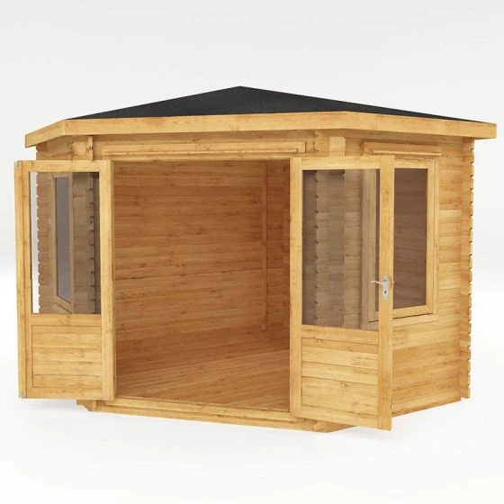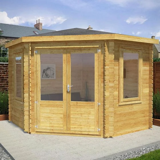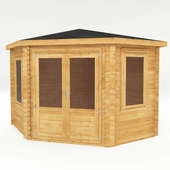 This corner summerhouse/ log cabin is straightforward to assemble and should be installed on a firm, level base. A competitively-priced professional installation service is available to buy as an optional extra.