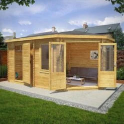 Beautifully designed, expertly built and incredibly versatile, the Mercia 5m x 3m Corner Log Cabin Plus Side Shed (28mm) – Double Glazed is the ultimate multi-purpose garden building.
