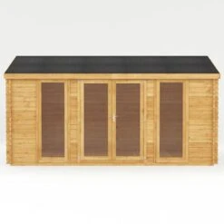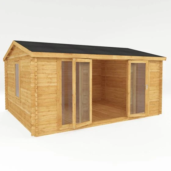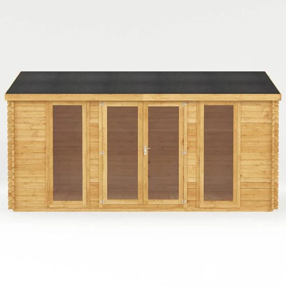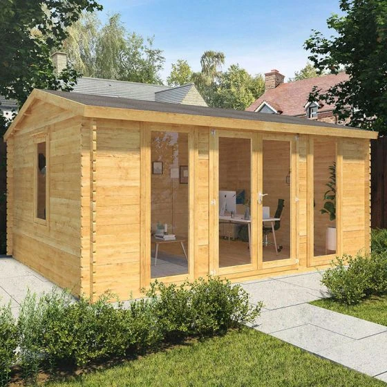 This large home office is constructed in the UK from 28mm interlocking log boards on a robust 27mm x 44mm frame, so is strong, long lasting, and very well insulated. All of the timber used is FSC®-certified, so only sourced from sustainable, well-managed forests.