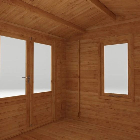 This garden office is available with 28mm, 34mm or 44mm cladding, and in various sizes.