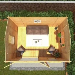 This home office is constructed in the UK from 28mm interlocking log boards on a robust 27mm x 44mm frame, so is strong, long lasting, and very well insulated. All of the timber used is FSC®-certified, so only sourced from sustainable, well-managed forests.