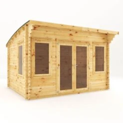 Insulated for use the whole year round, the Mercia Helios 4m x 3m Curved Roof Log Cabin (44mm) – Double Glazed is a multi-functional garden building, with a stylish, modern design.