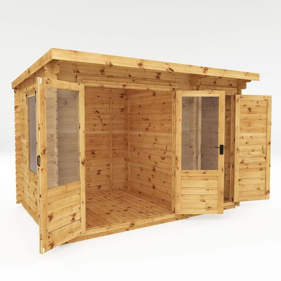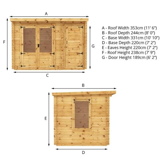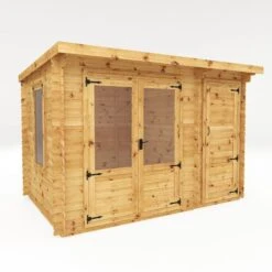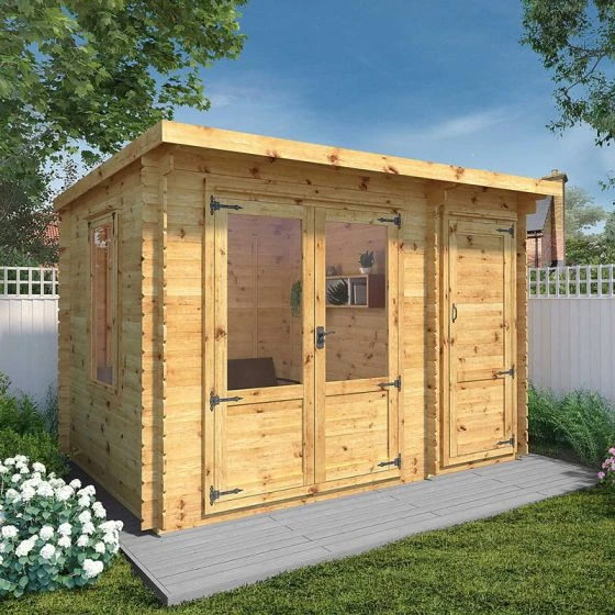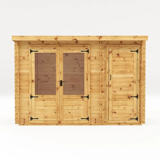 Combining a light, airy living area with an independent garden storage space, the Mercia Visby 3.5m x 2.4m Pent Log Cabin with Side Shed (19mm) is a premium garden building with an excellent 10-year anti-rot guarantee. The shed can be built to either the left or the right of the main cabin