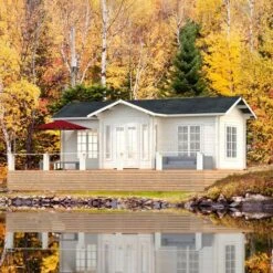 The 26×16 (7.8×4.8m) Palmako Anna 70mm Log Cabin features one of the best designs and builds on the market. With a huge 26.8m2 of space divided into a large open plan room, a small back room ideal as a bathroom and a side room ideal as a bedroom, this log cabin is a great alternative to a house extension if you want a guest suite or granny flat. It is a garden room full of possibilities: garden office, home gym, craft studio, entertainment rooms and so much more.
