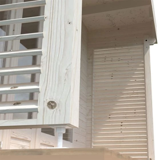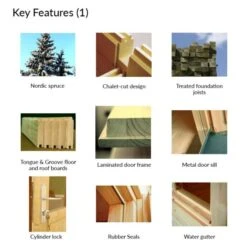 This log cabin is manufactured from interlocking 44mm Nordic spruce tongue and groove boards. The chalet-cut design means a tighter interlocking build for enhanced protection from the elements. Wind braces further aid this premium log cabin’s stability.