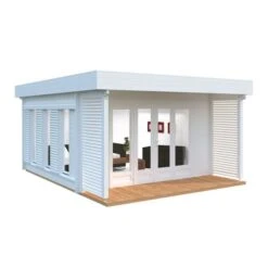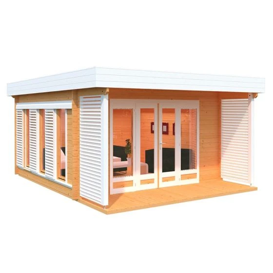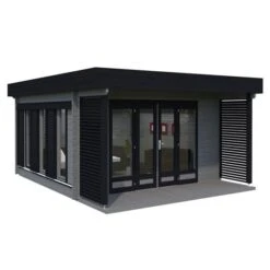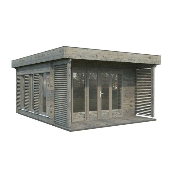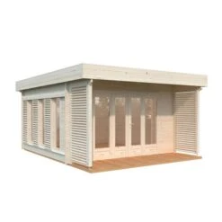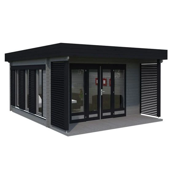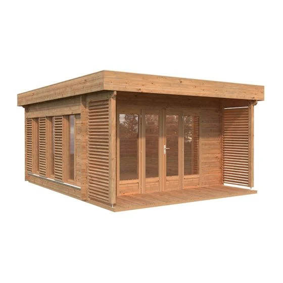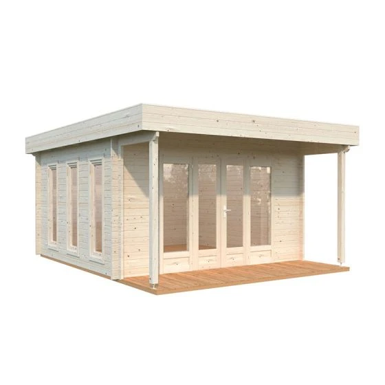 The Palmako Caroline 4.3m x 5.4m Pent Log Cabin (44mm) is a premium garden room with 14.5m² of space and an eye-catching modern design, making it a natural choice for a state-of-the-art home office.