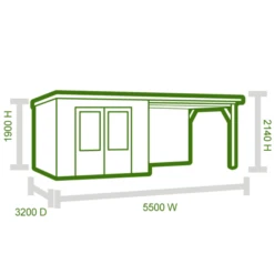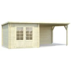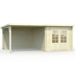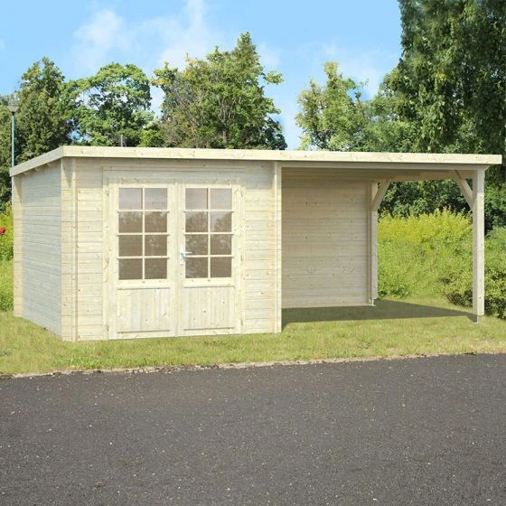 The Ella 5.4x3m Palmako Log Cabin combines indoor and outdoor sheltered space to create an attractive multi-purpose garden building. The 6.9m2 indoor space can be used as a garden office or family living space while the 8.2m2 outer area can shelter bikes, barbecues or logs, or can offer a patio style area with the addition of garden furniture.