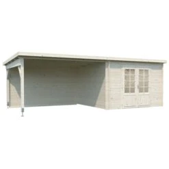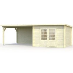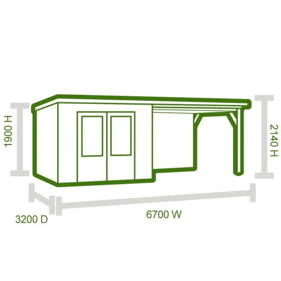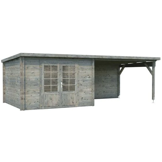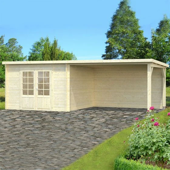 The Ella 6.6×3.2m Palmako Log Cabin combines indoor and outdoor sheltered space to create an attractive multi-purpose garden building. The 8.7m2 indoor space can be used as a garden office or family living space while the 10m2 outer area can shelter bikes, barbecues or logs, or can offer a patio style area with the addition of garden furniture.