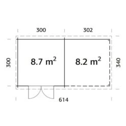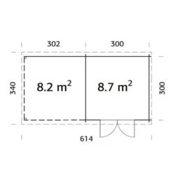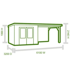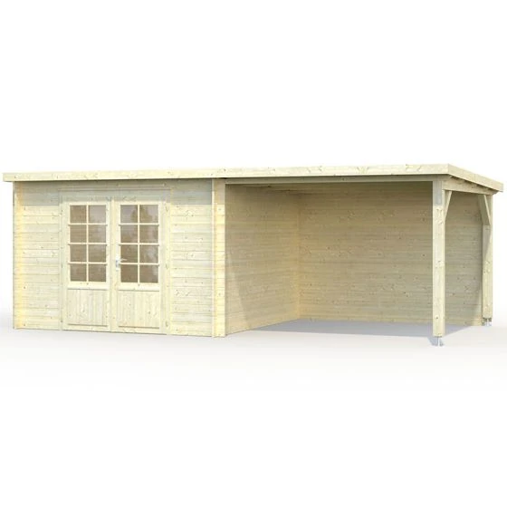 The Ella 6×3.2m Palmako Log Cabin combines indoor and outdoor sheltered space to create an attractive multi-purpose garden building. The 8.7m2 indoor space can be used as a garden office or family living space while the 8.2m2 outer area can shelter bikes, barbecues or logs, or can offer a patio style area with the addition of garden furniture.