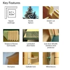 Constructed from thick 28mm Nordic Spruce interlocking logs, this is a strong and reliable garden cabin featuring an authentic chalet style build with chamfered log ends and wind braces. The apex roof and floor are constructed from 19mm tongue and groove cladding, well-known for its durability, strength and weather resistant qualities, making the whole design a long-lasting and hardwearing asset.