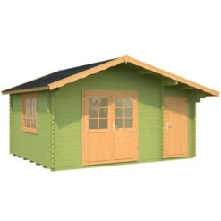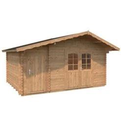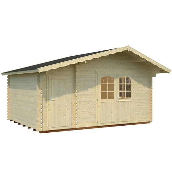 This wooden log cabin has 34mm cladding made from chalet cut Nordic Spruce logs which offer better protection from the wind and rain than standard timber construction. Wind braces add to the stability of this attractive summerhouse. The roof and floor are both made constructed from strong, attractive 19mm tongue and groove. The roof features an attractive overhang with offers shade and protects the front of the cain. Treated foundation joists complete the robust build.