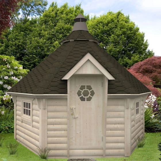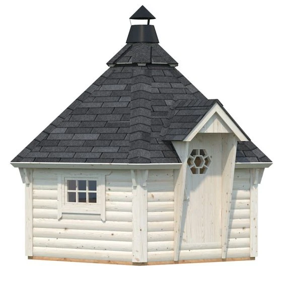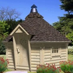 This BBQ hut is made from tough Nordic pine which creates a prestigious build quality. The panelling uses tongue and groove joints which help to maintain a weatherproof shell against both wind and rain. There are also a range of features on this log cabin hut which ensures it has fantasic quality. Firstly, the single door has a cylinder lock which keeps the BBQ hut secure along with all your possessions inside. The door also has a laminated framing and rubber seals to stop heat from escaping – making it the perfect place to relax during winter. The two double glazed windows allow natural light to flood inside of the BBQ hut; and the roof has an attractive quality as it is also made from tongue and groove cladding.