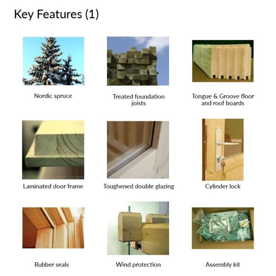 Supplied with a 5-year manufacturer’s parts warranty, this Palmako log cabin includes instructions and a fixings kit for a straightforward assembly. The Grace model of log cabin is available in 3 different sizes.