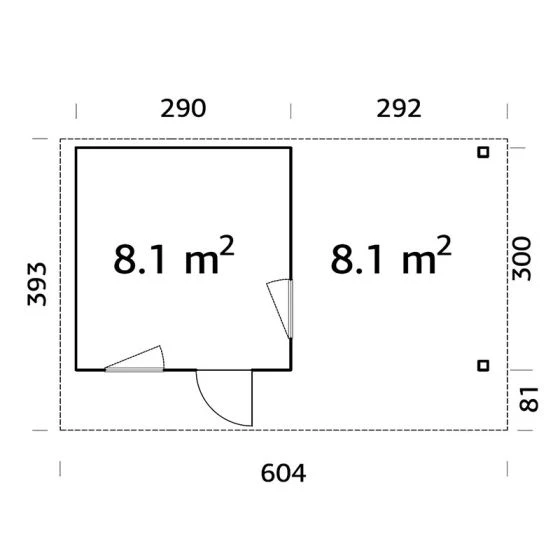 The thick 28mm floor and 19mm pent roof are both constructed from tongue and groove, well-known for its weather resistance, durability and strength. The floor is supported by treated foundation joists for protection from ground moisture, while the generous roof overhang helps prevent sun glare.