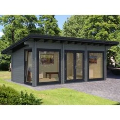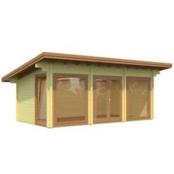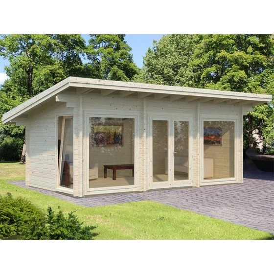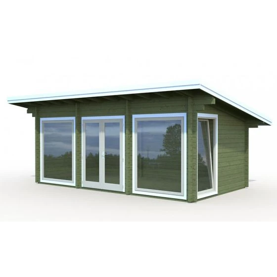 The 20×11 (6×3.3m)Palmako Heidi 70mm Log Cabin features thick 70mm logs, a fantastic glass frontage and a high quality build for a premium year round log cabin that can be used as a garden office, family room or for a multitude of other uses.