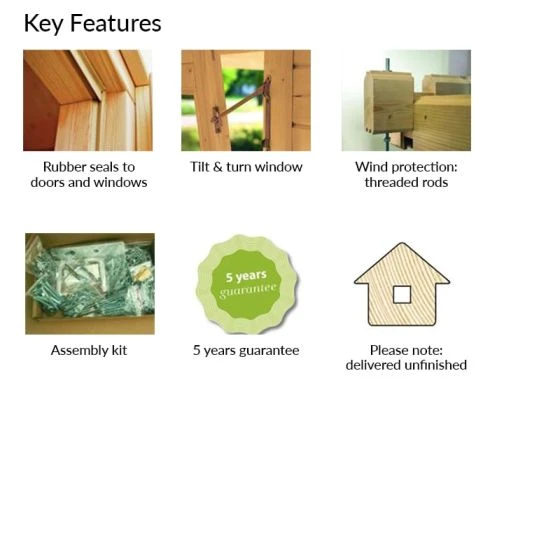 Please note that the roof does not include a covering. Buy SBS, EPDM, Charcoal Felt Shingles or Roof Underlay Felt as an optional extra.