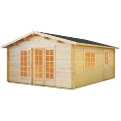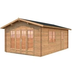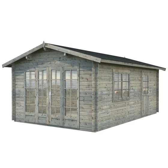 The 12×18 (3.8m x 5.7m) Palmako Irene 44mm Log Cabin has a superior build and an excellent range of features including two entrance points, full double glazing and a robust tongue and groove construction.