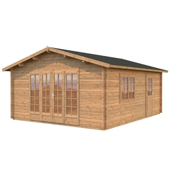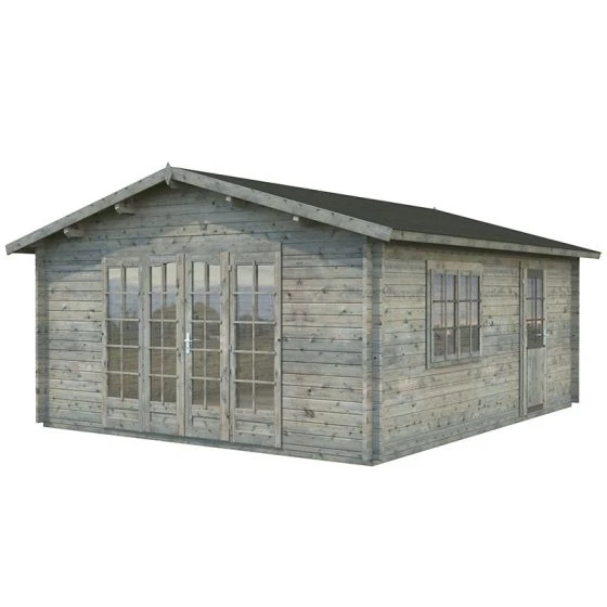 The 15×18 (4.7m x 5.7m) Palmako Irene 44mm Log Cabin has a superior build and an excellent range of features including two entrance points, full double glazing and a robust tongue and groove construction.