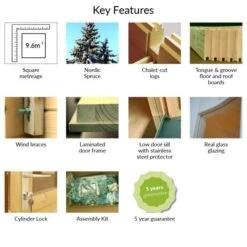 Constructed from 28mm Nordic Spruce, the sturdy interlocking log design and wind braces provide a strong and reliable structure. The floor is built from 19mm tongue and groove cladding, well-known for its durability, weather resistance and strength, providing a long-lasting and hardwearing surface. The reverse apex roof is 16mm tongue and groove too, providing a robust canopy above.