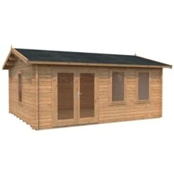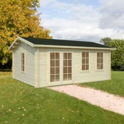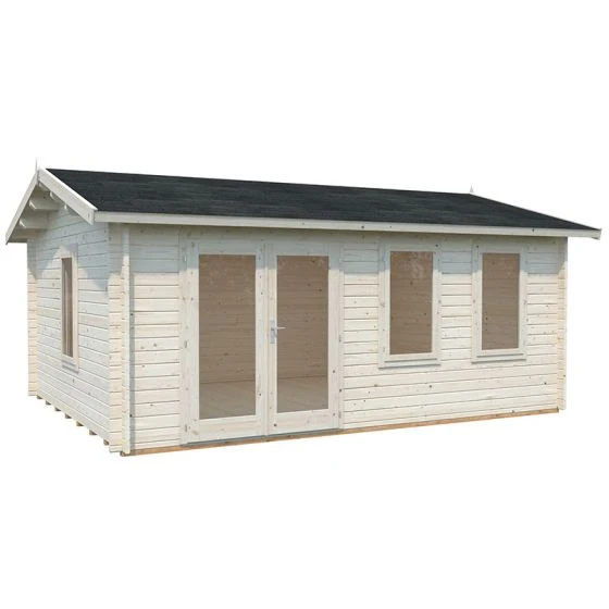 The 17×13 Palmako Iris 44mm Log Cabin is a spacious contemporary log cabin ideal for a garden office, a home gym, or a summer house for relaxation and entertaining.