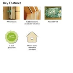 Stylishly constructed from thick 44mm high quality Nordic Spruce, the stylish design of the interlocking logs and wind braces provide a strong and long-lasting structure. The floor is 19mm tongue and groove cladding, well-known for its weather resistance, durability and strength, providing a hardwearing and long-lasting structure for many years use in this appealing space. This is further supported by treated foundation joists.