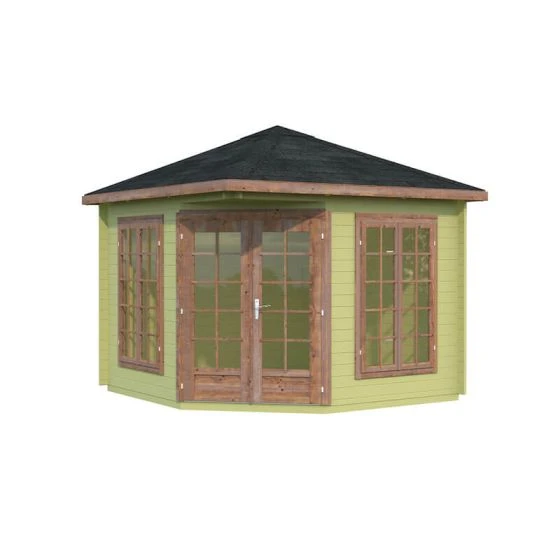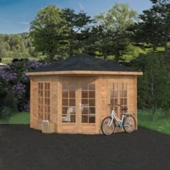This stylish log cabin comes untreated and with an excellent 5-year warranty. Please note that no roof covering is included but shingles can be purchased as an optional extra. A kit and instruction manual are supplied to help with a straight-forward assembly. Free Delivery is available to most UK addresses.