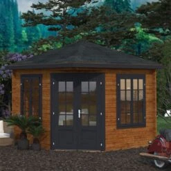 The premium Palmako Melanie 3.5m x 3.5m Corner Log Cabin (44mm) is perfectly designed to maximise outdoor space and is suitable for use the whole year round.