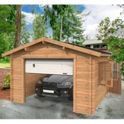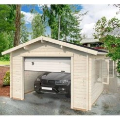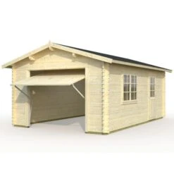 This garage is built from 44mm interlocking Nordic spruce logs, renowned for their resistance to harsh weather and rot. With a 19mm tongue and groove apex-style roof, this robust garage will keep its contents dry.