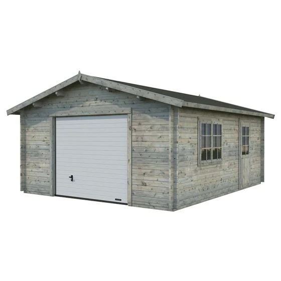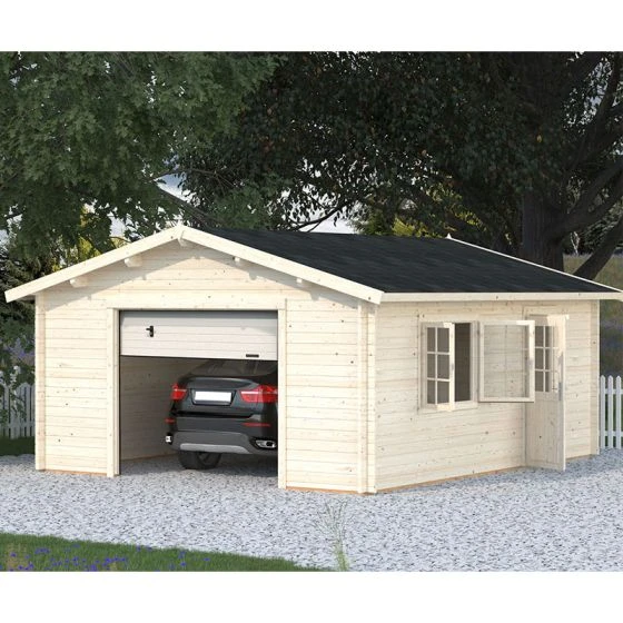 This garage is constructed from 44mm interlocking Nordic spruce logs, renowned for their resistance to harsh weather and rot. With a 19mm tongue and groove apex-style roof, this robust garage will keep its contents dry.