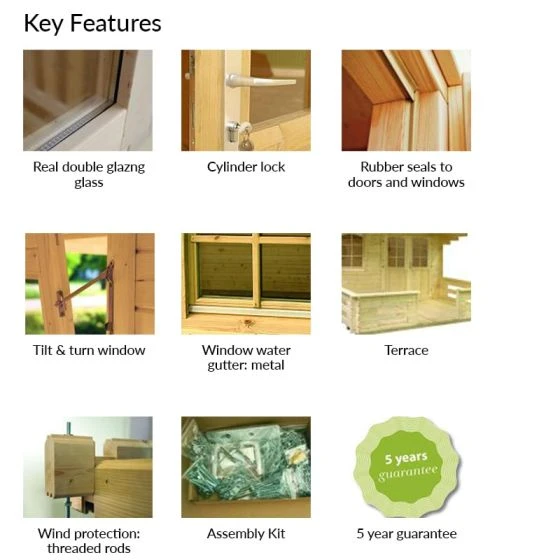 A five year guarantee supports the high quality of this garden building. The garden cabin is supplied untreated; we would recommend that an initial anti-fungal treatment is applied and repeated annually thereafter to support the guarantee. Alternatively, paint could be applied to suit your preference or garden design.