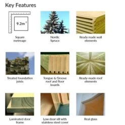 This log cabin is manufactured from premium, interlocking 34mm Nordic spruce logs for unbeatable all-round weatherproof protection. The floor and roof are both constructed from tongue and groove, well-known for its weather resistance, durability and strength.