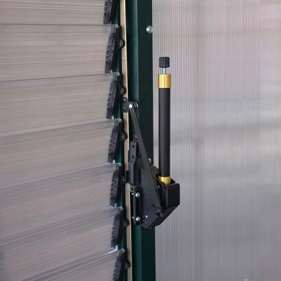 The Palram Canopia Rion Automatic Side Louvre Window Opener helps optimise the temperature in any Palram Canopia Rion Greenhouse with a side louvre window.