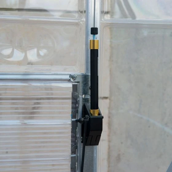 There’s no need to use electricity, or even be on hand, to operate this clever greenhouse auto louvre opener, which uses a piston and spring to automatically open and close any Palram Canopia Rion side louvre window, according to the temperature inside the greenhouse.