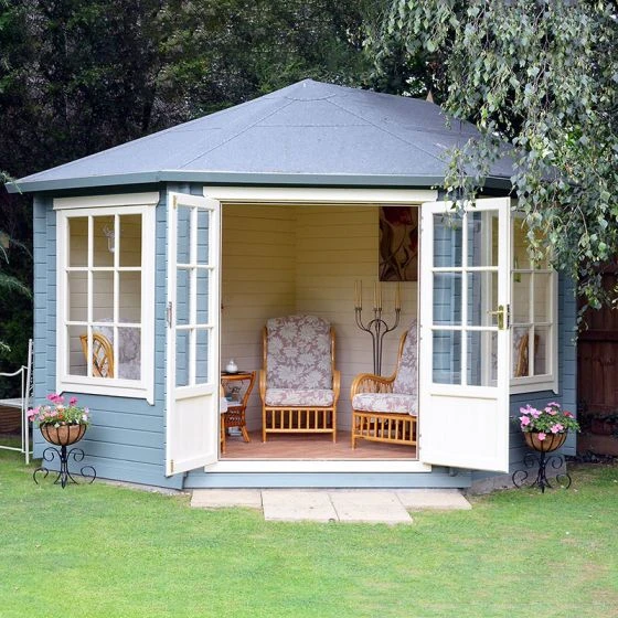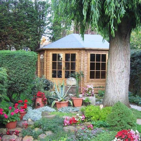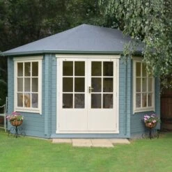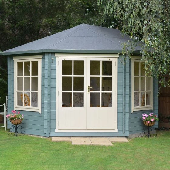 Designed to fit snuggly into a corner of the garden, the Shire Ardcastle 3m x 3m Corner Log Cabin Summerhouse (28mm) is a beautiful garden building in which to relax and unwind.