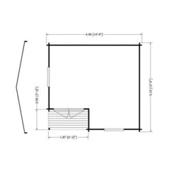 Note: This modern log cabin is delivered untreated and requires the customer to apply a good quality preservative to the external timber surfaces immediately after installation. This model also benefits from a generous eaves height of 2.00m (6’7). The porch area has a depth of 1.05m (3’6) and a width of 1.85m (6’1).