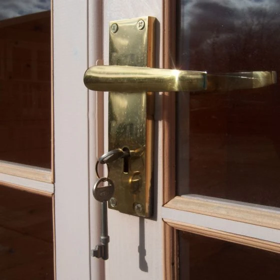 On the front of the Barnsdale Log Cabin you have the attractive double doors and these doors have been glazed ¾ of the way with a tough storm resistant glass. This will allow in the sun’s rays which will illuminate the interior space. When building the Cabin you can choose which side you wish to add the fully glazed window which will also act as a great light source. During the summer heat the window can be opened so that fresh air can flow. The double doors however have a handy rubber seal which will stop heat escaping during the winter months allowing the cabin to be used all year round. To protect your storage from theft, a strong padlock will deter thefts and add a good layer of security.