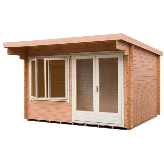 Expertly manufactured in the UK, from 28mm Northern European pine logs, this garden cabin is strong, durable and very well insulated. The floor is constructed from 14mm tongue and groove, and supported by pressure-treated bearers to protect it from rot-causing ground moisture. The roof is made from 14mm tongue and groove too. It features a modern pent design and is fitted with a premium mineral-felt cover for complete weatherproof protection.