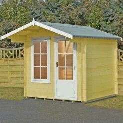 The 2.4m x 2.6m Shire Crinian Log Cabin Summerhouse features tongue and groove cladding throughout for a robust, charming garden building ideal for making the most out of time in the garden.