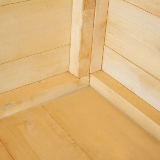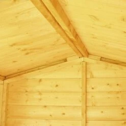 This 8x8ft summerhouse is built with 19mm cladding and a 12mm roof and floor. The roof is finished with felt.