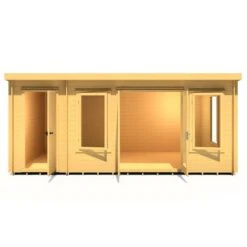 Including a light and airy garden room, plus spacious side shed, the Shire Elm 5.1m x 3m Log Cabin (19mm) provides both an inviting place to relax and invaluable garden storage space.